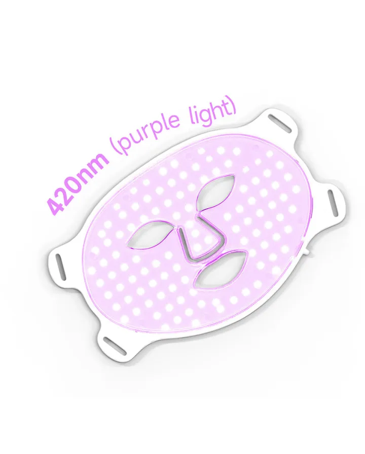 🟣 Purple Light (630+460 nm): A dual-frequency combination of red and blue light that reduces acne marks (post-acne spots).